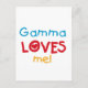 Gamma Loves Me T-shirts, cards, stickers, bodysuits bags, and more with colourful red, yellow, and blue text and heart design. These Gamma Loves me apparel and gift items will make gamma smile!