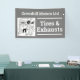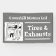 Automotive business banner. Mechanics banner. Tire sales. Garage banner. Car servicing, tires, exhausts, and vehicle repairs. Grey and white.