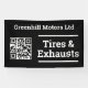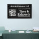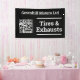 Garage banner with QR Code. Car servicing, tires, exhausts, and vehicle repairs. Black and white.