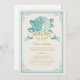 Garden baby shower invitations with a green-blue and copper flower design. Customisable to be used for any occasion.
