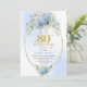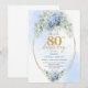 Garden Blue Floral Gold 80th Birthday Invitation