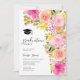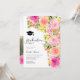 Calling class of 2024! Pretty beautiful garden spring summer open house graduation party with pretty bold and vibrant pink, peach and yellow flowers and greenery leaves, with a brushed script typography on an elegant editable on white background