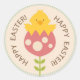 Sweet baby chick popping out from a tulip with stripe and polka dot prints and 3D look zebra print butterflies and novelty trims Easter sticker.