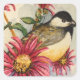 Garden Chickadee Watercolor Pink Daisy Square Sticker