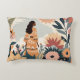 A serene illustration featuring a woman in a patterned bohemian dress standing amidst a lush garden of oversized florals in an abstract colour block style. The design showcases a warm, earthy colour palette of terracotta, peach, navy, and sage green. This modern botanical illustration combines folk art elements with contemporary design, perfect for those who love botanical art with a feminine touch. The stylised flowers and foliage create a dreamy, whimsical atmosphere while maintaining a sophisticated aesthetic.