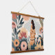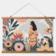 A serene illustration featuring a woman in a patterned bohemian dress standing amidst a lush garden of oversized florals in an abstract colour block style. The design showcases a warm, earthy colour palette of terracotta, peach, navy, and sage green. This modern botanical illustration combines folk art elements with contemporary design, perfect for those who love botanical art with a feminine touch. The stylised flowers and foliage create a dreamy, whimsical atmosphere while maintaining a sophisticated aesthetic.