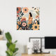 A serene illustration featuring a woman in a patterned bohemian dress standing amidst a lush garden of oversized florals in an abstract colour block style. The design showcases a warm, earthy colour palette of terracotta, peach, navy, and sage green. This modern botanical illustration combines folk art elements with contemporary design, perfect for those who love botanical art with a feminine touch. The stylised flowers and foliage create a dreamy, whimsical atmosphere while maintaining a sophisticated aesthetic.