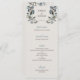 This elegant and chic wedding menu features painted watercolor florals in blue and pink hues and comes with a matching floral pattern on the back.