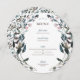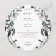 This elegant and chic wedding menu features painted watercolor florals in blue and pink hues and comes with a matching floral pattern on the back.