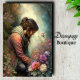 Enchanting garden scene with figure admiring roses. Transform furniture with dreamy artwork that adds beauty and value to you pieces. Perfect for romantic cottage aesthetics.