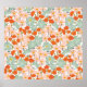 Hand-drawn flowers in pink, orange, and mint on a white background.