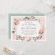 Elegant floral baby shower invitation features an ivory plaque bearing your baby shower details and surrounded by blush pink and cream flowers, lush greenery and tiny buds. A coordinating blush pink background completes the look. Personalize with your baby shower details in elegant white lettering. Cards reverse to solid light sage green.