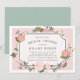 Elegant floral bridal shower invitation features an ivory plaque bearing your bridal shower details and surrounded by blush pink and cream flowers, lush greenery and tiny buds. A coordinating blush pink background completes the look. Personalise with your bridal shower details in elegant white lettering. Cards reverse to light sage green.