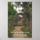 This poster features an original artwork of a beautiful, ornate garden gate, leading and the quotation "Still round the corner there may wait, a new road or a secret gate
