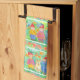 A colourful kitchen towel decorated with illustrations of sweet gnomes in the garden visiting with the bugs, watering flowers, and playing accented with melon pink daisy style flowers. Fun for anyone who enjoys gardening!