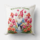 A garden gnome waters his flower garden. The reverse side is a tulip garden.