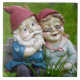 Happy pair of garden gnomes sitting on a park bench enjoying the afternoon. Nice grassy meadow in the background. Looks like they are sharing secrets and laughing . . . True love!