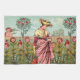 An antique vintage image based on artwork from illustrator Walter Crane from 1870, showing a painting of a beautiful woman in her garden of sunflowers. "How does her garden grow" vintage nursery rhyme.