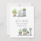 Share your new address with sweet watercolor moving announcements, featuring two shelves of potted plants and greenery. Personalise with your custom announcement (shown with "we've moved"), your name(s) and address change information.
