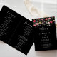This garden multicolor wildflower folded wedding program is perfect for a rustic wedding. The design features a multicolored assortment of pink, blush, purple, yellow, white, violet, red, burgundy wild flowers in a black background.