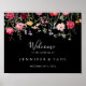 This garden multicolor wildflower wedding welcome sign is perfect for a rustic wedding. The design features a multicolored assortment of pink, blush, purple, yellow, white, violet, red, burgundy wild flowers in a black background.