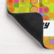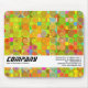 A business mouse pad template with a multi-colour abstract geometric design made up of spirals. Ready to be customised with your details.