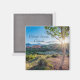 Souvenir magnet featuring a sunburst of rays burst between tree branches as the sun goes down over the mountains with Pikes Peak and Garden Of The Gods to the left on a summer evening. Looking for more products? Visit my store: http://www.zazzle.com/timelessmomentsphtgy Art was taken by Jennifer White with Timeless Moments Photography. All images are copyrighted.