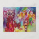 Colourful, whimsical,unique mixed media painting .Elegant design in gold sparkles,vibrant blue,green,red, pink,yellow,teal,purple colours with golden and silver foil, The theme concerns archetypes and mediaeval alchemic symbolism . This is a distilled vision from occidental and oriental collective imaginary searching remote images from the deep in the mysterious garden of the lost shadows.