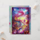 Colourful, whimsical,unique mixed media painting .Elegant design with a magic butterfly plant,in gold sparkles,vibrant blue,green,red, pink,yellow,teal,purple colours with golden and silver foil, The theme concerns archetypes and mediaeval alchemic symbolism . This is a distilled vision from occidental and oriental collective imaginary searching remote images from the deep in the mysterious garden of the lost shadows.