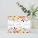 Stunning invitation to a Garden Party Bridal Shower. Features gorgeous wildflower and eucalyptus watercolor in shades of blue, peach, purple, violet, blue, and green. Personalised on front with shower information and on back with bride's registry. Sets a perfect tone for an outdoor shower!
