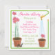 Cute little snail and flower pots with pink daisies and a watering hose makes a frame for this elegant yet fun garden party invitation. Great for a Bridal Shower or luncheon. Hand drawn illustration by McBooboo.