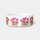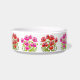 Original fine art design of colourful pink and red Oriental poppy flowers by artist/designer Carolyn McFann of Two Purring Cats Studio printed on a quality porcelain cat food bowl for floral art fans.