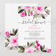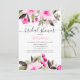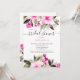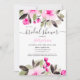 Garden pretty pink floral watercolor bridal shower invitation featuring hand painted pink flowers, green and grey greenery leaves with an elegant modern script brush typography.