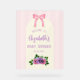 Shower for a baby girl featuring blooming garden roses in shades of blush pink and lilac. Trendy cream archway and pink bow against a pastel striped background. Some design element(s) licensed under CC0
