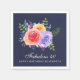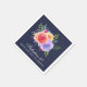 Fabulous 40, paper party napkins. Designed with a nice bouquet of watercolor roses with sprigs, leaves and branches all together in a colourful floral arrangement. Navy blue background.