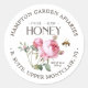 Personalise with your business name, address, and honey weight. Central illustration of a vintage rose illustration by Belgian artist Pierre Redoute. Western honeybee photo. Ideal for beekeepers and honey sellers. Common honey net weight conversions: 8oz (227g), 12oz (340g), 16oz (454g), 32oz (907g), 5lb (2.27kg).