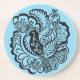 Sandstone coaster with a garden scene. Artwork is in black and includes birds, flowers, leaves, seeds, and a butterfly. Choose your own background colour to match your decor. Shown here on sky blue.