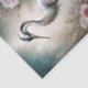This ethereal portrait captures a stately heron in contemplative stillness, its graceful form emerging from a misty garden of blush roses and delicate botanicals. The artwork demonstrates exceptional mastery in its portrayal of the bird's textured plumage, which transitions from crisp whites to subdued blues and greys, with each feather rendered in exquisite detail.
