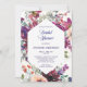 Splashy, vibrant watercolor flower images make a colourful border on this memorable bridal shower invitation that is appropriate for spring, summer and autumn. Colours in the floral images include purple violet, pale tangerine, orange, crimson and soft green. A subtle gold confetti overlay is placed on the white background, adding a bit of sparkle. At the centre is a white hexagon that contains your custom text in dark blue. The back of the invitation is solid matching blue.!