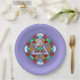 These lovely paper plates that match Jewbilee's newest Shabbos charcuterie board. Leslie Sigal Javorek's original digital painting gives illusion of hand-thrown pottery, an Art Nouveau-ish mandala, heart inside Star of David, surrounded by highly stylised flowers.
