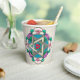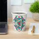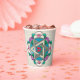 The delightful new design on this Shabbos Paper Cup is from an original digital painting by Leslie Sigal Javorek. The focal point is an Art Nouveau-ish mandala w/ a heart inside a Star of David surrounded by highly stylised flowers. Subtle use of shading gives the illusion of a deep, hand-thrown pottery bowl but Surprise!