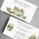 This business card features a watercolor illustration of garden pots, plants, tools, and a watering can. Designed for plant shops, florists, landscapers, or garden-related businesses, it highlights a nature-focused and handmade style. A professional way to share your contact details while reflecting your work with plants and gardening.