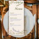 The clean, vertical layout highlights each course in an organized and stylish way, allowing guests to easily view the dining experience you’ve planned. Subtle botanical accents and soft pastel florals give the design a light, romantic atmosphere while keeping the focus on your carefully curated menu.