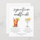 This garden wedding signature cocktails menu paper sheet features simple black typography above 2 of your favourite drinks and their ingredients for your summer wedding bar. A chic Long Island Iced Tea and Lemon Drop Martini drawing add a fun flair to your bar menu. Complete with the couple's names and date for their reception.