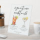 This garden wedding signature cocktails pedestal sign features simple black typography above 2 of your favourite drinks and their ingredients for your summer wedding bar. A chic Long Island Iced Tea and Lemon Drop Martini drawing add a fun flair to your bar menu. Complete with the couple's names and date for their reception.