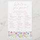 Keep the bridal shower lively with this What’s In Your Purse? game featuring hand-painted watercolor wildflowers in soft pastel shades. Guests check off items they have in their purse — from everyday essentials to funny surprises — and add up their points to see who wins. It’s an easy, interactive game that gets everyone laughing and comparing their finds. Perfect for rustic, floral, and garden-themed bridal showers, this game coordinates beautifully with the Wildflower Wedding Collection for a cohesive and charming celebration.