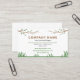 A simple and elegant business card for professional gardeners. It can be used by people working in the landscaping field: landscaper, mowing and maintaining the lawn, tree pruner, maintaining green spaces, etc. It includes 2 tree branches and lawn.