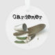 A large grey watering can is setting in the middle of a garden. The green plants surrounding it. Across the can is a name that can be customised for 'your' particular gardener. At the bottom are the words: "to everything there is a season". And so it is with gardening. On the other side is a photo of gardening tools; a trowel, pruners, and a small container (perhaps to water or possibly a small plant was in it). At the top of this photo is the word: "GARDENER".