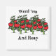 Tomatoes are a staple for most every gardener and none of us can wait for those juicy red fruits. Fun graphic design with a row of tomato plants surrounded by the play on words Weed 'em And Reap.