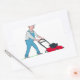 Gardener Mowing Lawn Cartoon Rectangular Sticker